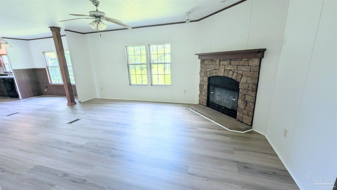 **Welcome to Your Country Retreat!** Nestled on a serene 2-acre lot, this charming 4-bedroom, 2-bathroom home blends modern comfort with the beauty of nature. As you approach the property, you'll be captivated by the lush, wooded views that create a picturesque and peaceful ambiance. Step inside to discover fresh paint and new luxury vinyl plank flooring that flows seamlessly throughout the open floor plan, enhancing the inviting atmosphere. The spacious living area transitions effortlessly into a bright kitchen featuring a center island and plenty of cabinetry for all your storage needs. The kitchen/dining area combo makes it ideal for entertaining guests while a cozy den with a fireplace provides additional space to unwind or enjoy quiet evenings at home. Additionally, the plentiful windows flood the space with natural light, adding to the overall warmth and welcoming vibe. The large primary suite is a true sanctuary complete with a spacious walk-in closet and a generous ensuite bath complete with a double sink vanity, walk-in shower, and a luxurious soaking tub. Additionally, the other well-sized bedrooms offer comfortable accommodations for guests or can easily be transformed into a home office to suit your lifestyle needs. Take a moment to relax on your charming front deck, sipping morning coffee while soaking in the tranquility of your private surroundings, accompanied by the soothing sounds of nature. This home is more than just a living space; it's a lifestyle choice that embraces peaceful country living. Don't miss the opportunity to own this private escape in the woods, where serene landscapes await you. Make this beautiful property your own and enjoy the ideal balance of comfort and nature. CALL and schedule your showing TODAY and step into a world of beauty and tranquility-your country living dream is just a visit away! Buyer to verify all information during due diligence.